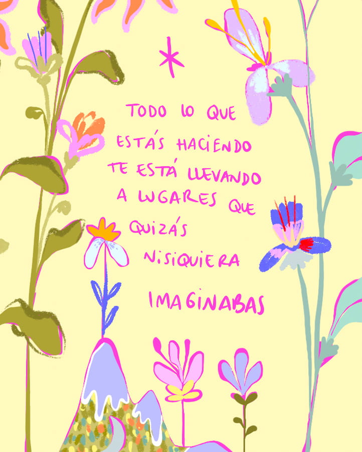 Postal con mensaje que te recuerda que haciendo cosas nuevas, te acercas a oportunidades diferentes.