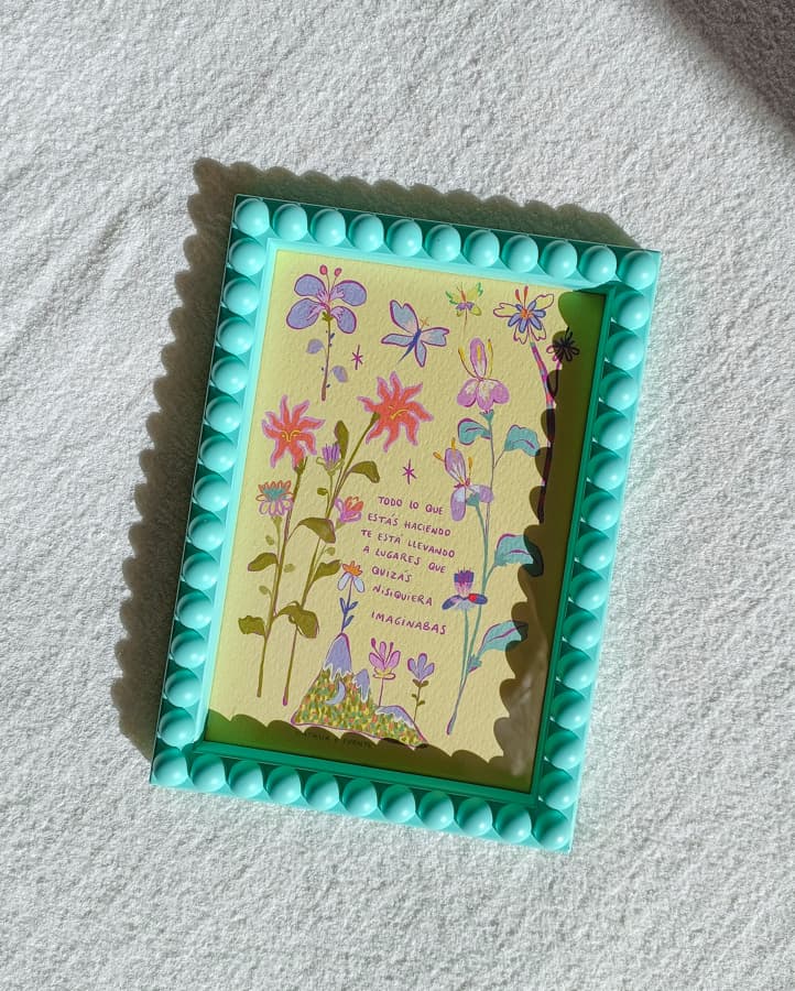 Puedes pegarla en la pared, enmarcarla o ponerla en un soporte de madera.